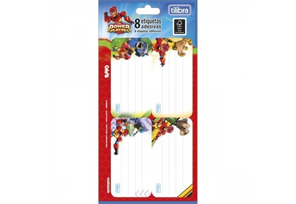 A Etiqueta Escolar Adesiva Power Players é ideal para identificar itens do material escolar como cadernos, livros, agendas e pastas.