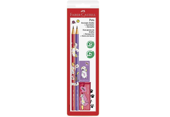 KIT ECOLAPIS PETS+BORRACHA+APOTADOR FABER CASTELL