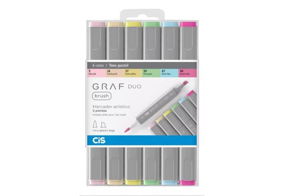 MARCADOR CIS GRAF DUO BRUSH COM 6 CORES PASTEL