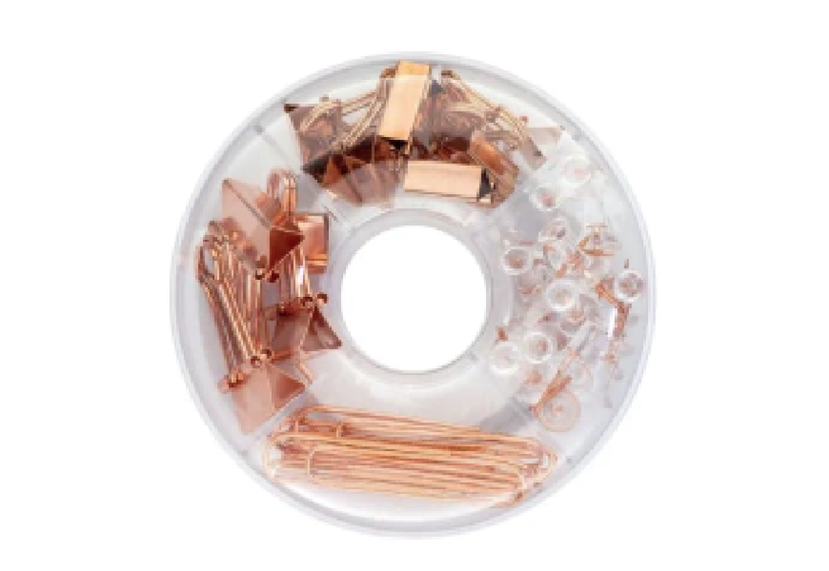 KIT OFFICE PRENDEDORES REDONDO CLIPS/BINDER/ALFINETE/ELÁSTICO ROSE GOLD