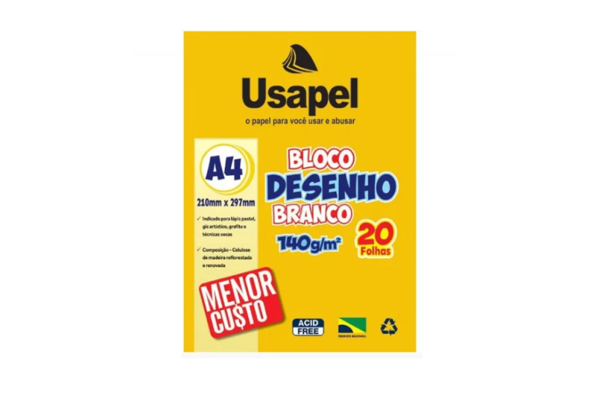 BLOCO DE DESENHO BRANCO USAPEL A4 140G/M2 20FLS 210X297MM