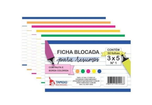 2. FICHA BLOCADA PARA RESUMO COLORIDA 3X5 N. 1 50F.