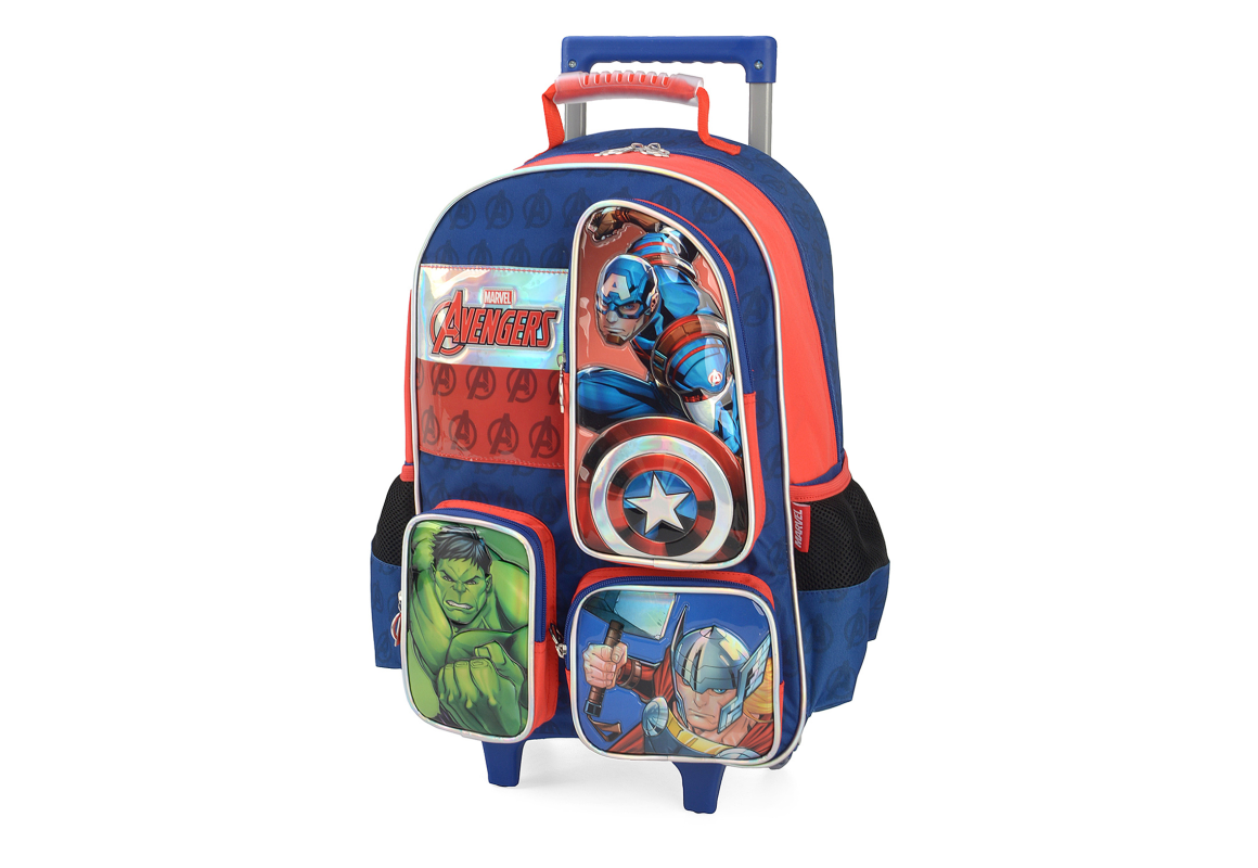 2. MOCHILA LUXCEL AVENGERS COM RODAS AZUL UN