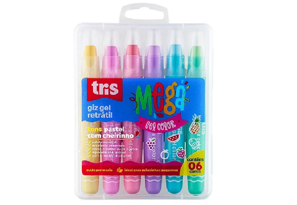 GIZ DE CERA RETRÁTIL GEL TRIS MEGA PASTEL 6 CORES TRIS