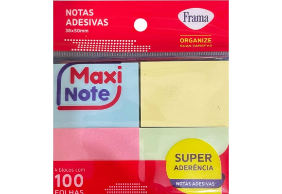 BLOCO AUTOADESIVO MAXI NOTE 38MMX50MM 4 UNIDADES C/ 100 FLS