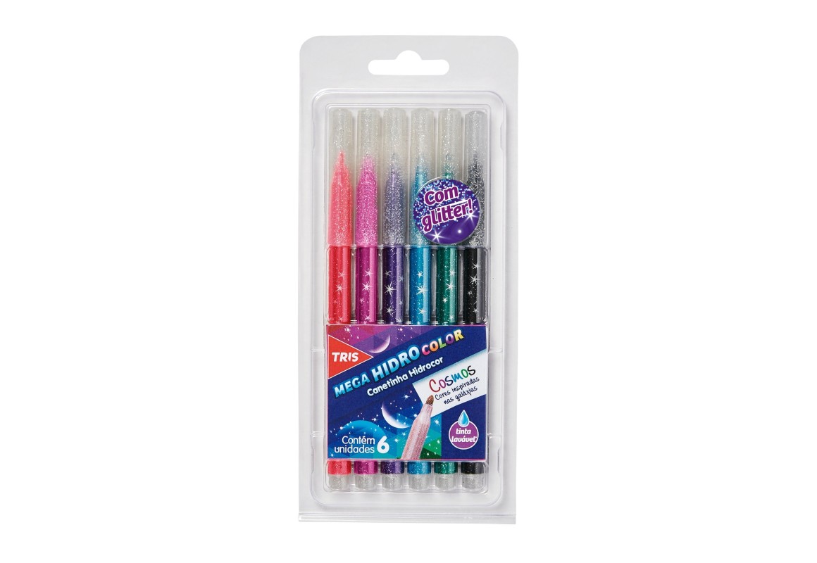 2. HIDROCOR COM GLITTER TRIS MEGA COSMOS CJTO 6UN